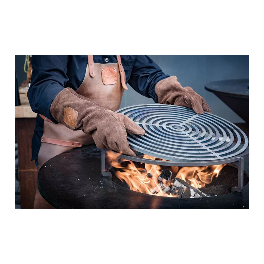- 1 grille saisie pour Ofyr 100 de Ø49 x H11 cm en acier noir pour un espace de cuisson supplémentaire au centre du brasero. Elle se place par dessus le foyer pour réaliser des cuissons directes à haute température au feu de bois. L’accessoire idéal pour marquer une côte de bœuf !